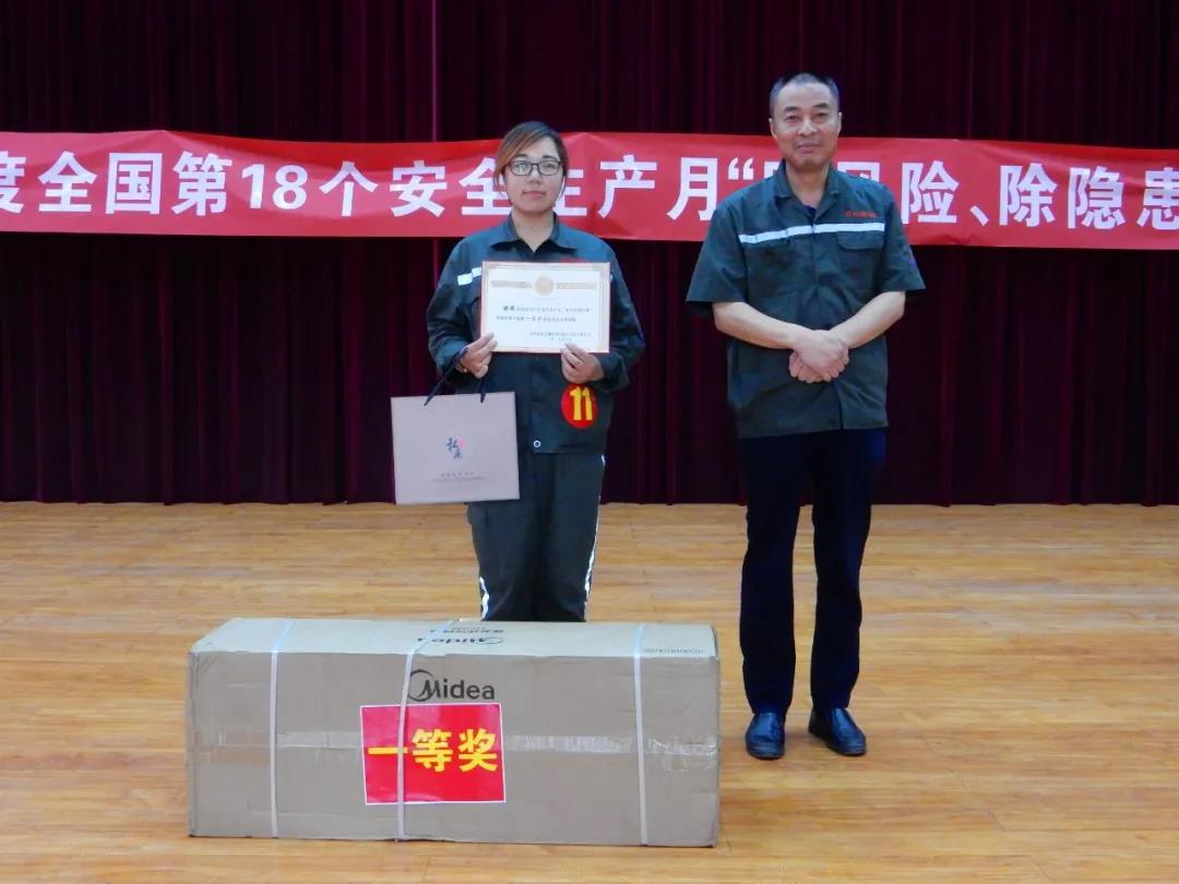 二等獎兩名,由生產(chǎn)部王部長為來自機動部的獲獎選手封曉琴和來自煉鋼廠的獲獎選手候?qū)殢姺謩e頒發(fā)榮譽證書及獎品,并合照留念。