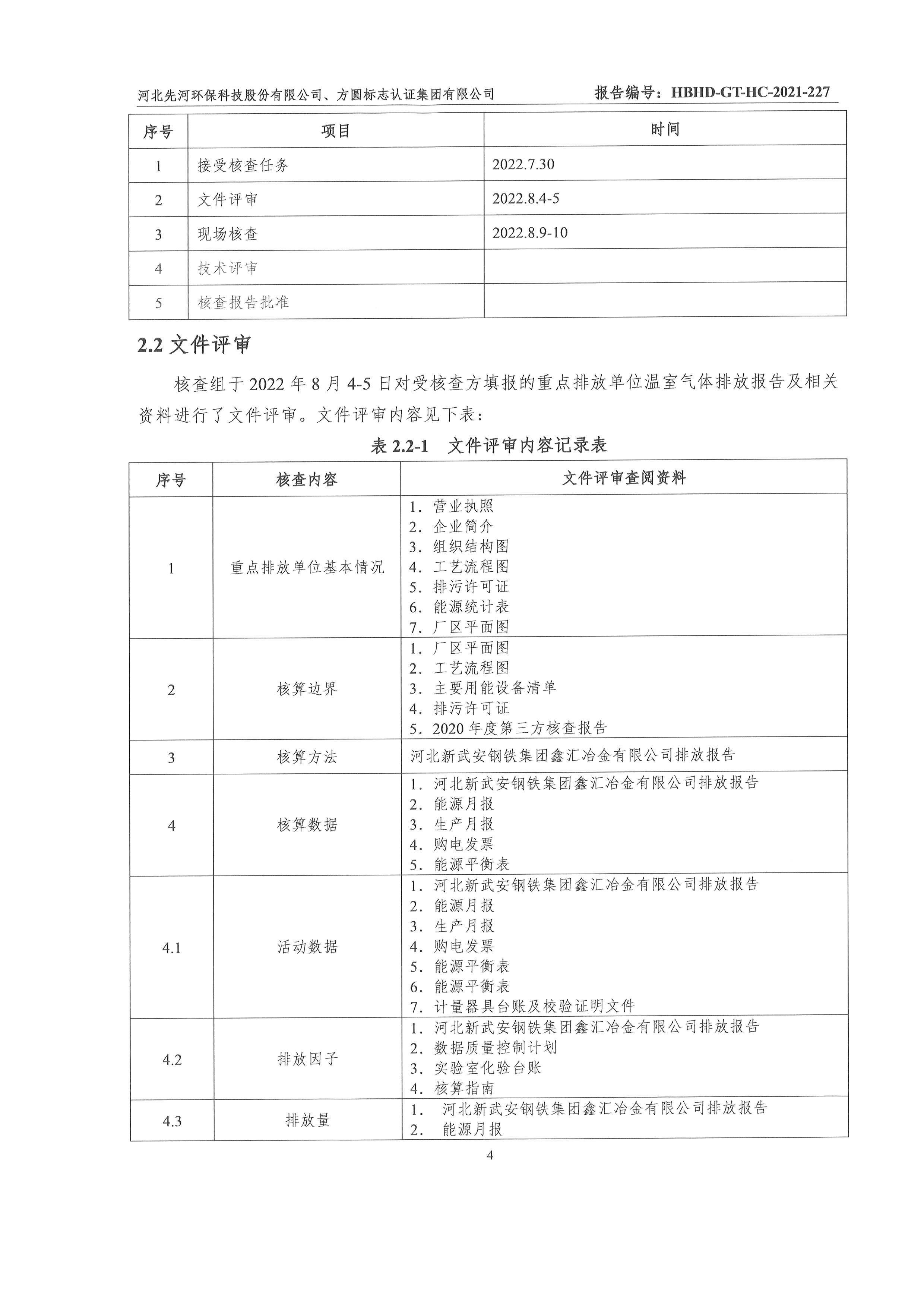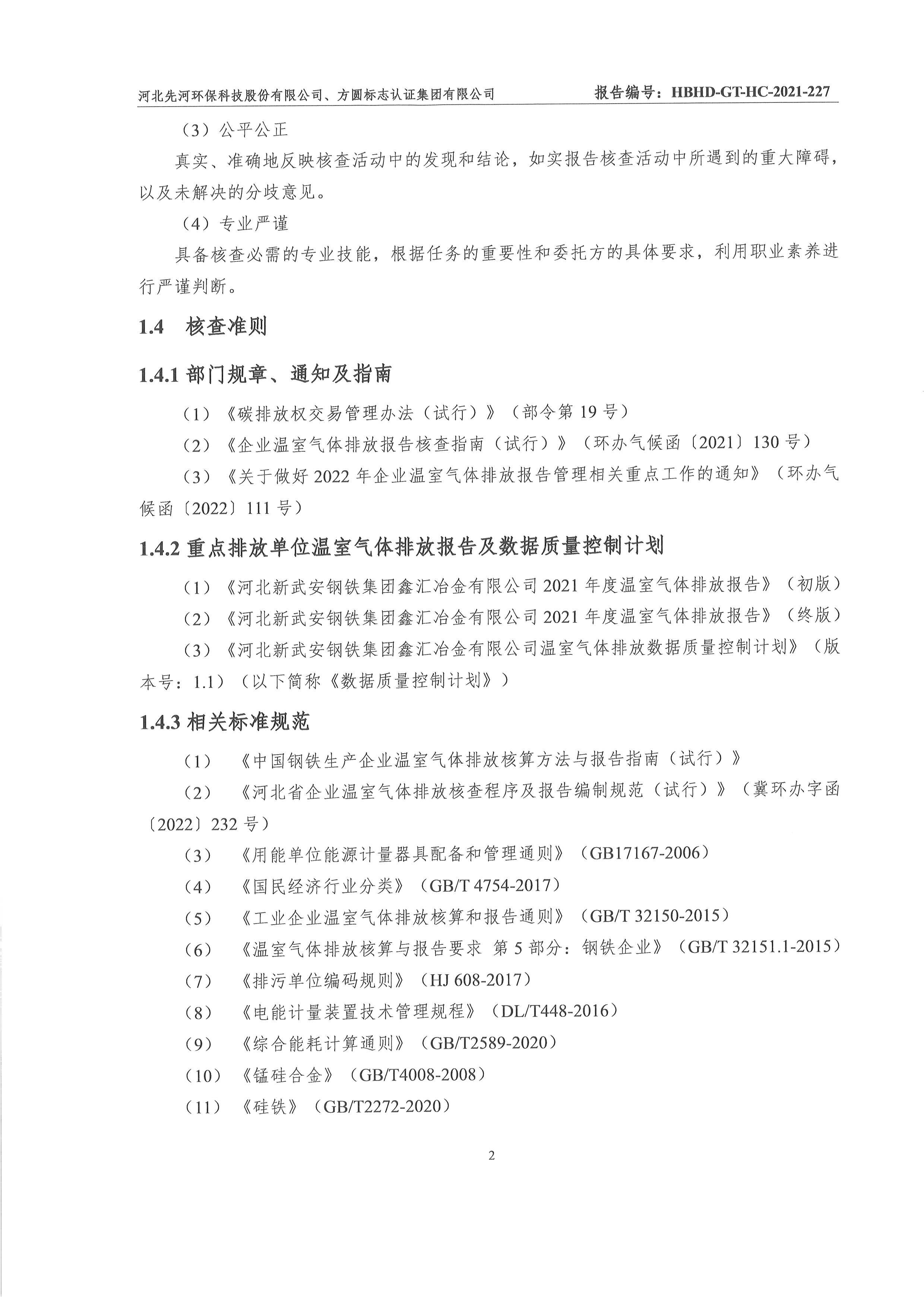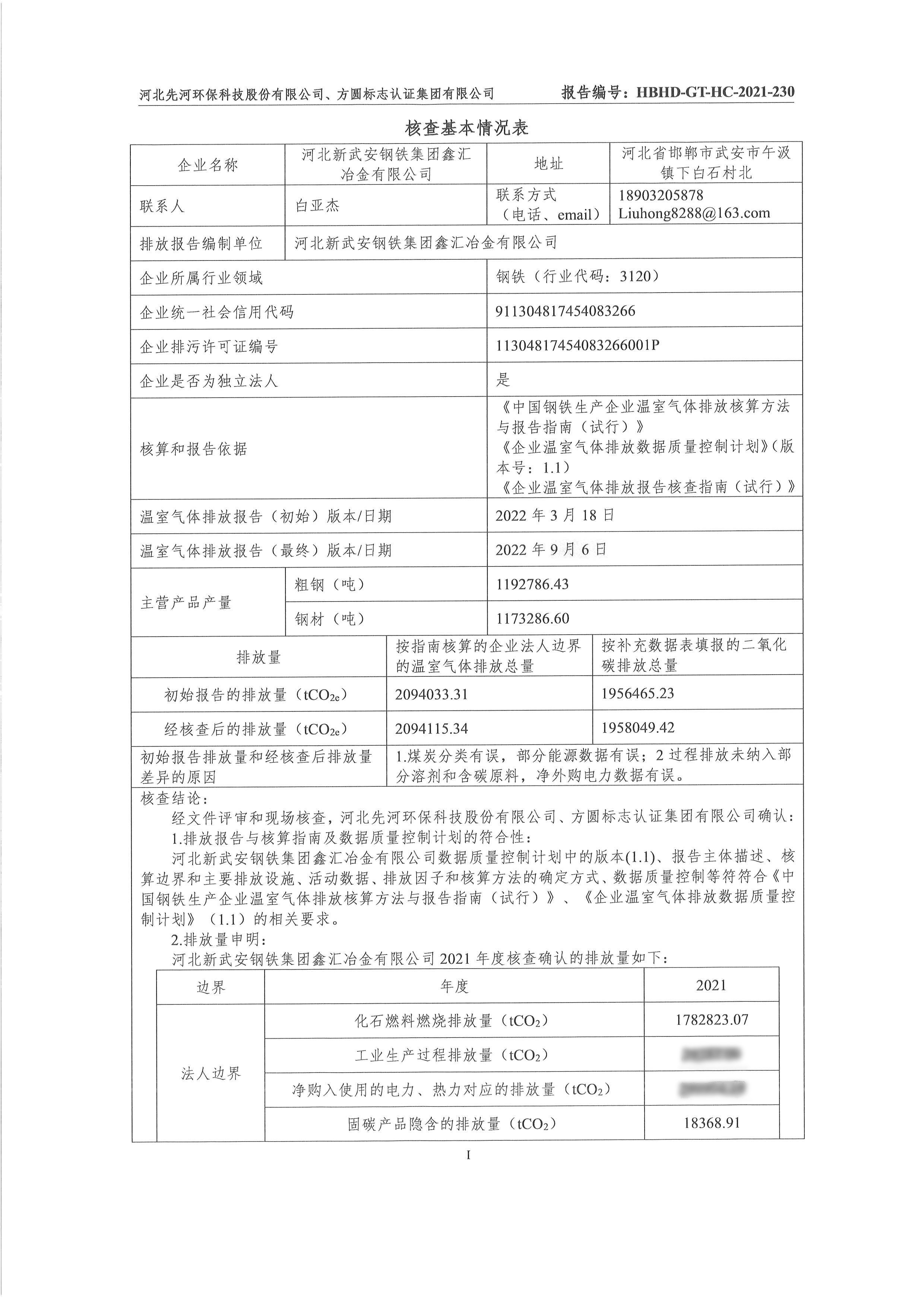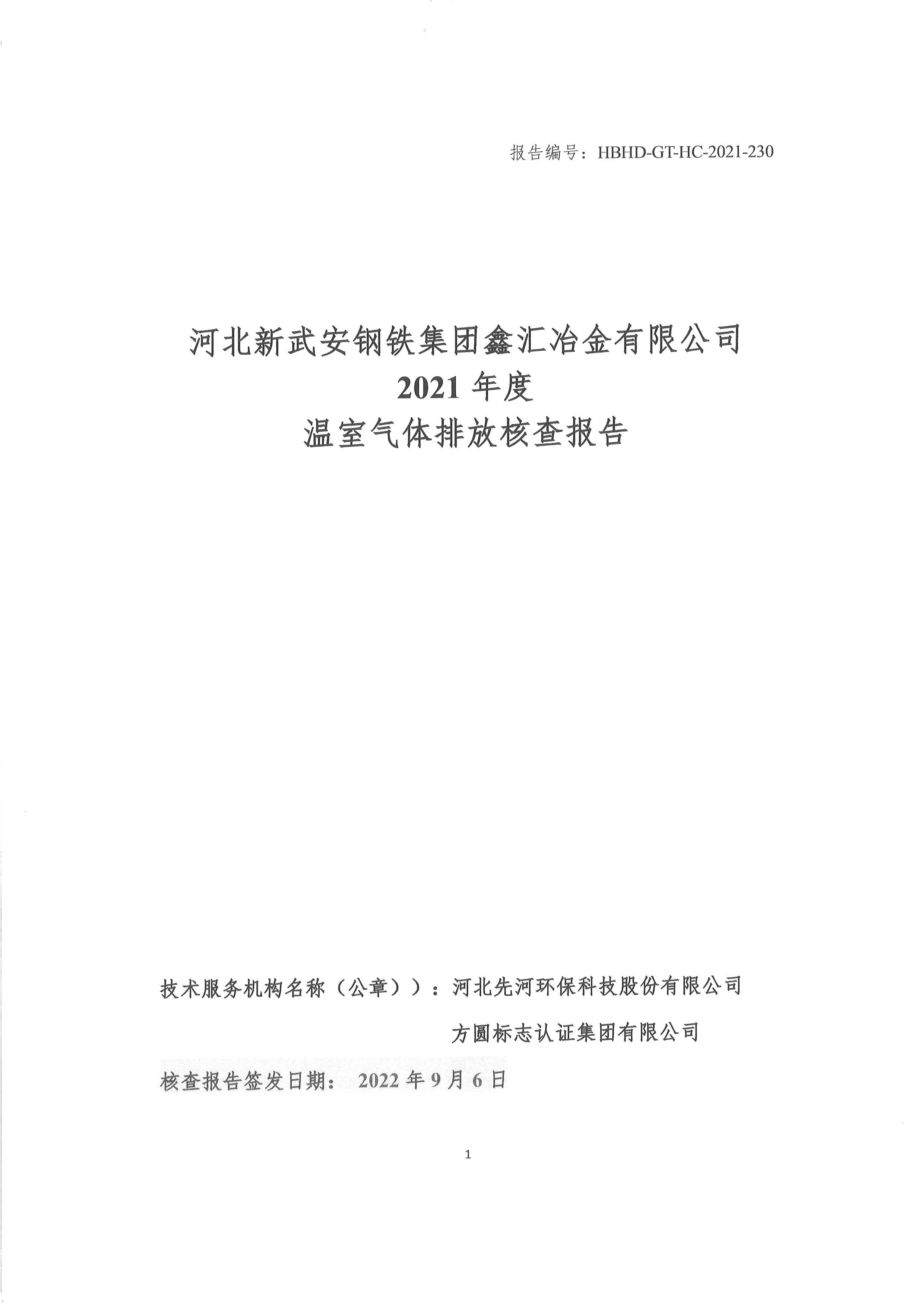 2021年河北新武安鋼鐵集團(tuán)鑫匯冶金有限公司碳排放核查報(bào)告