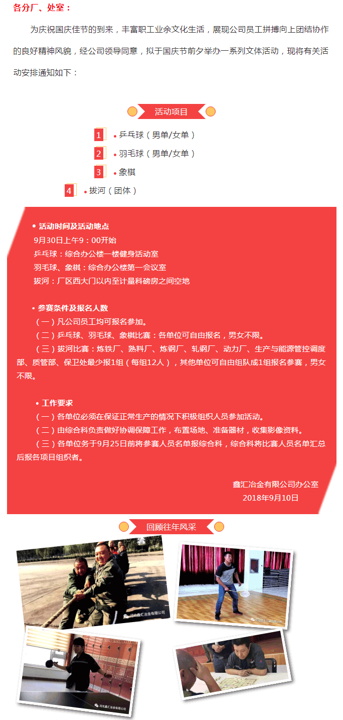 新聞?wù)?鑫匯公司關(guān)于舉辦國慶節(jié)文體活動的通知