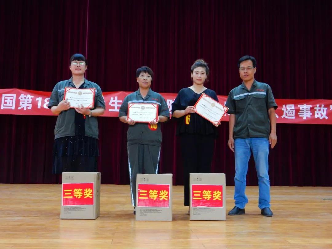 三等獎三名,由安環(huán)部杜部長為來自動力廠獲獎選手段冉、來自熟料廠的獲獎選手李潔和來自煉鋼廠的獲獎選手李艷琦分別頒發(fā)榮譽證書及獎品,并合照留念。