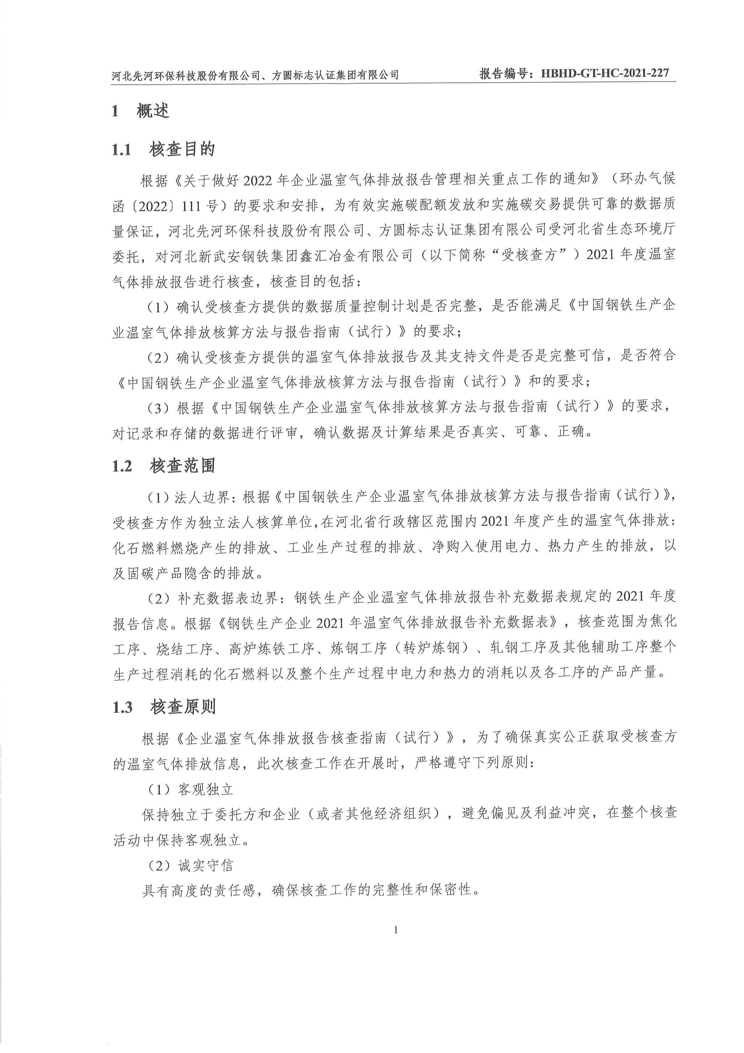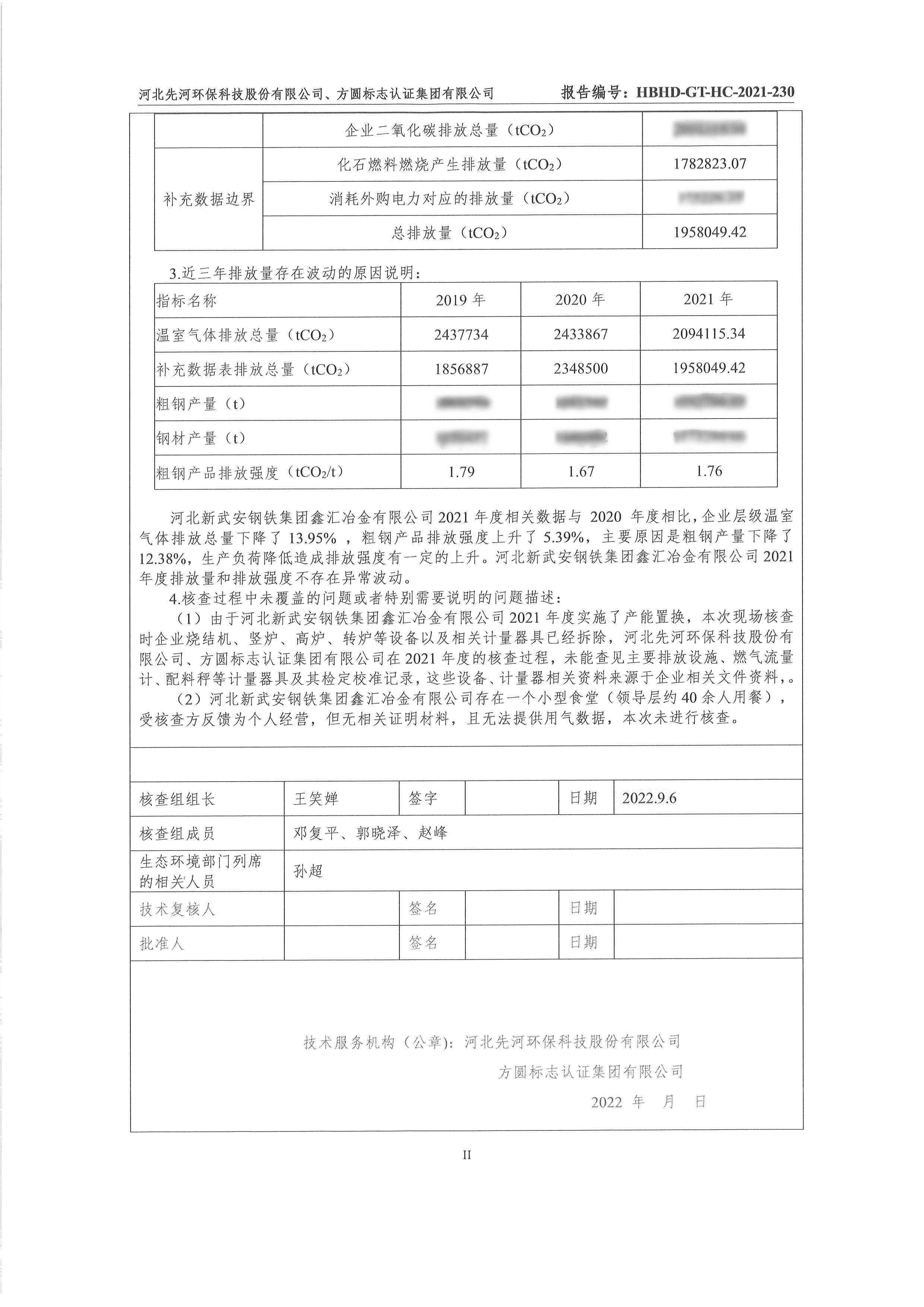 2021年河北新武安鋼鐵集團(tuán)鑫匯冶金有限公司碳排放核查報(bào)告